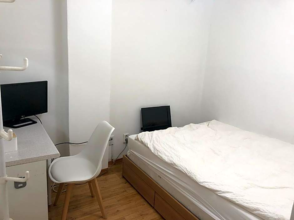 Air-conditioned room for 2 guests with a flat-screen TV and mini-fridge. The private bathroom has a sink and a shower.